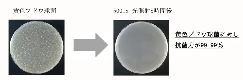 また、光触媒に含まれている銀成分の効果により、暗所でも抗菌効果が期待できます。(技術協力:信越化学工業株式会社)