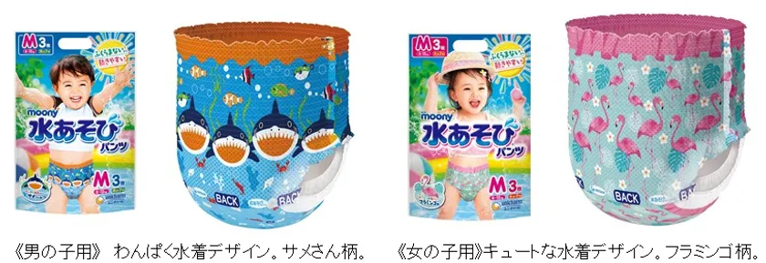 ・「スリム吸収体」採用で水に入ってもふくらまないから動きやすく、お風呂の中でも楽しく遊べます。
