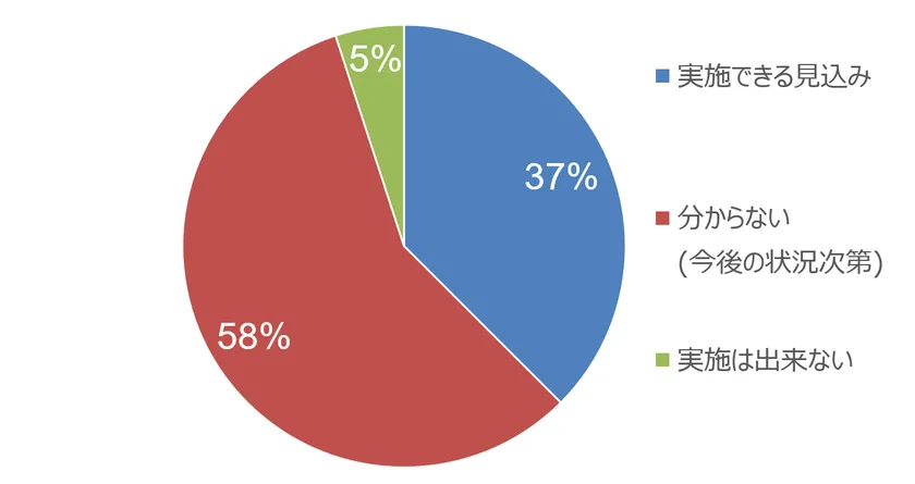 1)新型コロナウイルス影響下においても、健康経営施策の実施について、「実施できる見込み」との回答は約40%