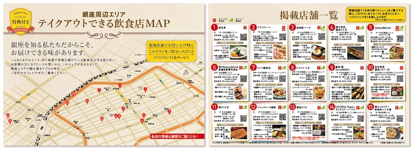 銀座周辺エリアの15店舗が協力し 「テイクアウトできる飲食店MAP」を5月1日より配布