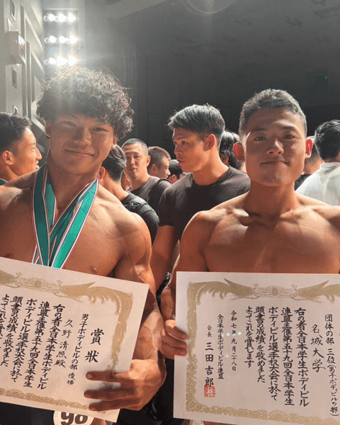 その言葉通り、日本体育大や東海大学など強豪が揃う関東勢に対抗するため、この1年間、筋肉をバランスよくつけながら「見劣りしないようひたすら体を大きくするトレーニングに励んだ」と久野さん。全国の精鋭40人がエントリーする中、ステージ上で鍛え抜いた肉体と洗練されたポージングを披露し「大学生ボディビルダー日本一」に輝きました。