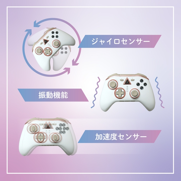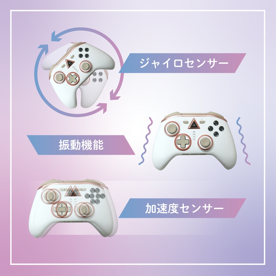 本製品には、ジャイロセンサー、振動機能、加速度センサーのコントローラーに必要な基本的な機能も搭載されておりますので、臨場感あふれるゲーム体験ができます。