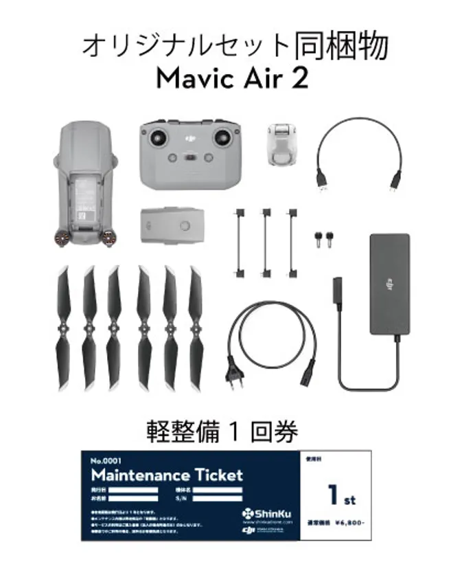 深空株式会社オリジナルセットでは、新製品「Mavic Air 2(マビックエアー2)」にDJI認定整備士による軽整備サービス1回券が付属。