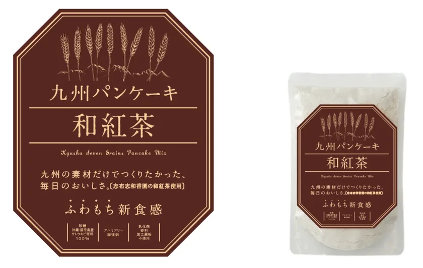 九州素材だけで作ったパンケーキミックス「九州パンケーキ」ブランドを取り扱う株式会社九州テーブル(宮崎県宮崎市、代表取締役社長:内村 健久)は、このたび3年ぶりに新商品「和紅茶」を開発いたしました。これまでプレーンに始まり、抹茶や紅茶など期間限定発売も含めて計7種類を発表してきました。新たに加わる「和紅茶」は、従来の九州パンケーキミックスに鹿児島県の志布志「和香園」の茶葉を粉末にして配合しています。