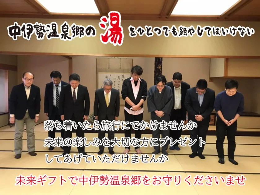 中伊勢温泉郷観光推進協議会(※)(本部:三重県津市西丸之内1-1 家城ビル3階、中伊勢温泉郷観光推進協議会 会長:伊藤 真司)は、日本の文化を継承するため、お客様の未来をおもてなしさせていただきたい「未来宿泊ギフト券」について、2020年4月29日からクラウドファンディングでの支援募集を開始いたしました。