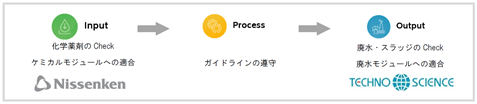 【プログラム」化学物質の使用(input)、生産工程(process)、廃水・スラッジ等の排出(output)に分けて管理・確認