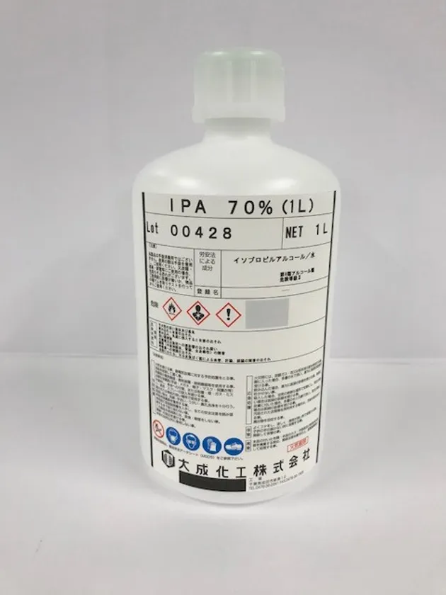 大成化工株式会社(本社:千葉県成田市、代表取締役:稲生 豊人)は、清掃用アルコール剤『IPA 70% (1L)』を医療施設・老人介護・保育施設様に向けて無料配布いたします。手指の触れる機会が多いドアノブやデスク周りなど、身の回りの環境を常に衛生的に保ちます。製品は、コストパフォーマンスを考えた詰め替え用1Lタイプです。お手持ちのスプレーボトルなどに移してご使用ください。