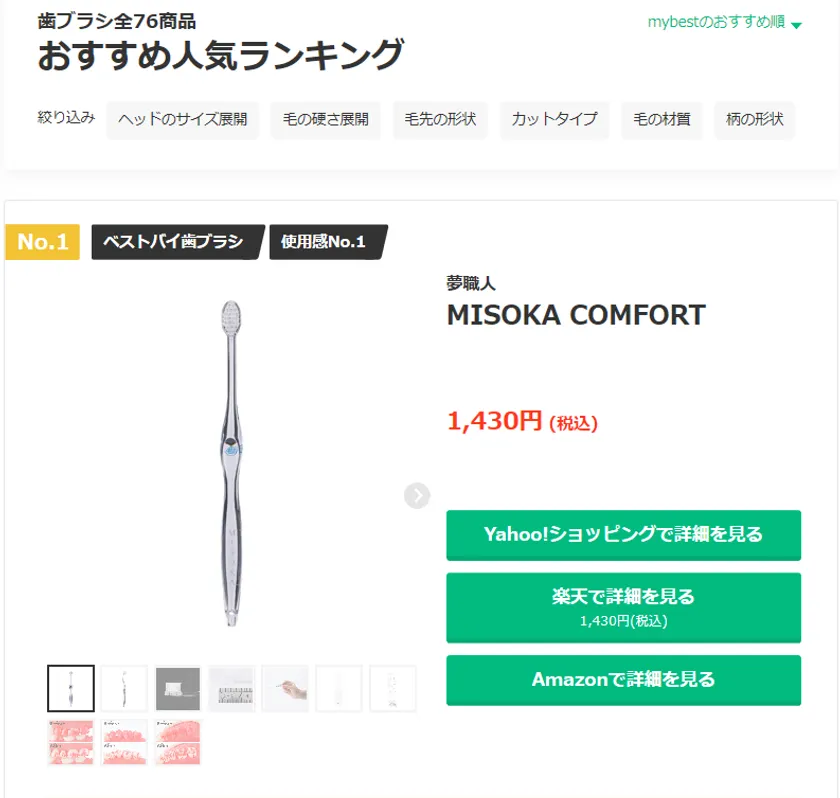 株式会社夢職人(本社:大阪府箕面市、代表取締役:辻 陽平)が製造するMISOKAは、商品比較サイトmybest(歯ブラシ部門)において、ドラッグストアなどでも定番の人気商品を含む76もの商品の中で1位を獲得しました。専門家が呼びかける歯周病と循環器病の関係、全身の健康問題に「歯ブラシのプロ」の立場から挑んでいます。