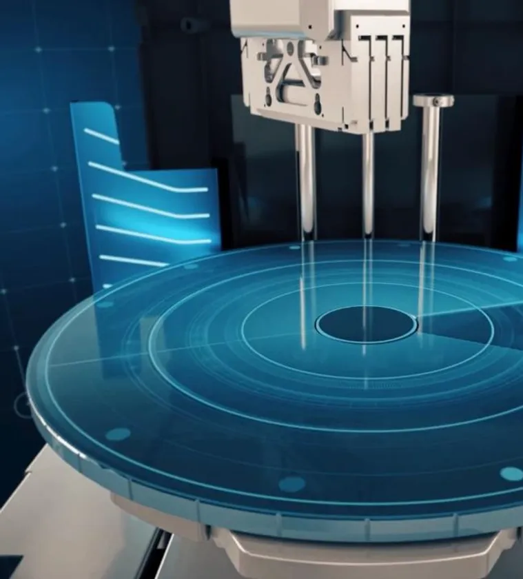 「Stratasys J55(TM)」ではストラタシス史上初となる円形の造形トレイを回転させる方式を採用しました。ヘッドは3つのエリア(内周、中周、外周)を移動するだけと可動を最小限まで減らし、これにより既存機種より低ノイズを実現しました。またヘッドの動きに必要であったスペースを無くすことで、最大造形可能エリアを犠牲にすることなく、オフィス環境でも使いやすいサイズを実現しました。