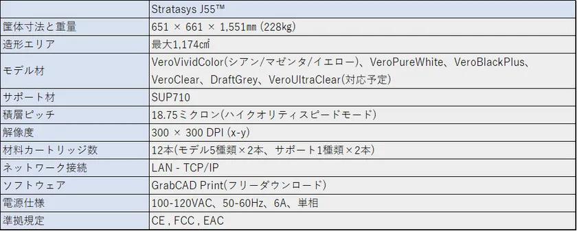 ■「Stratasys J55(TM)」詳細スペック