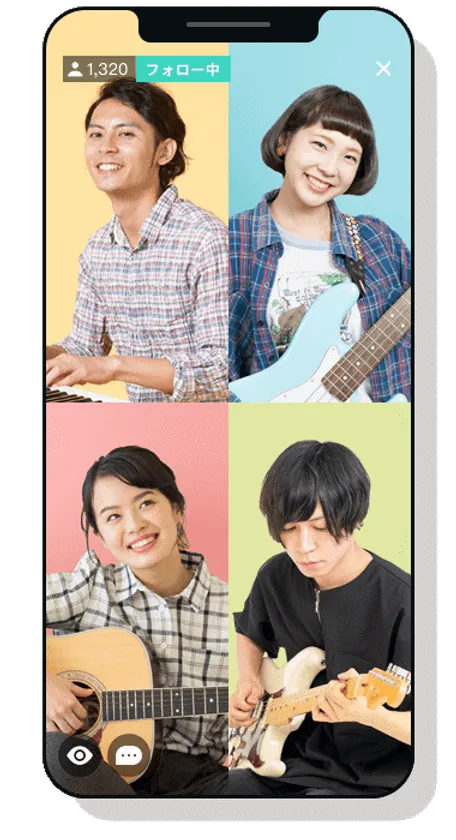 ・友達同士、メンバー同士、共演者同士の有名人による会話を楽しむ会員制ライブ配信アプリ