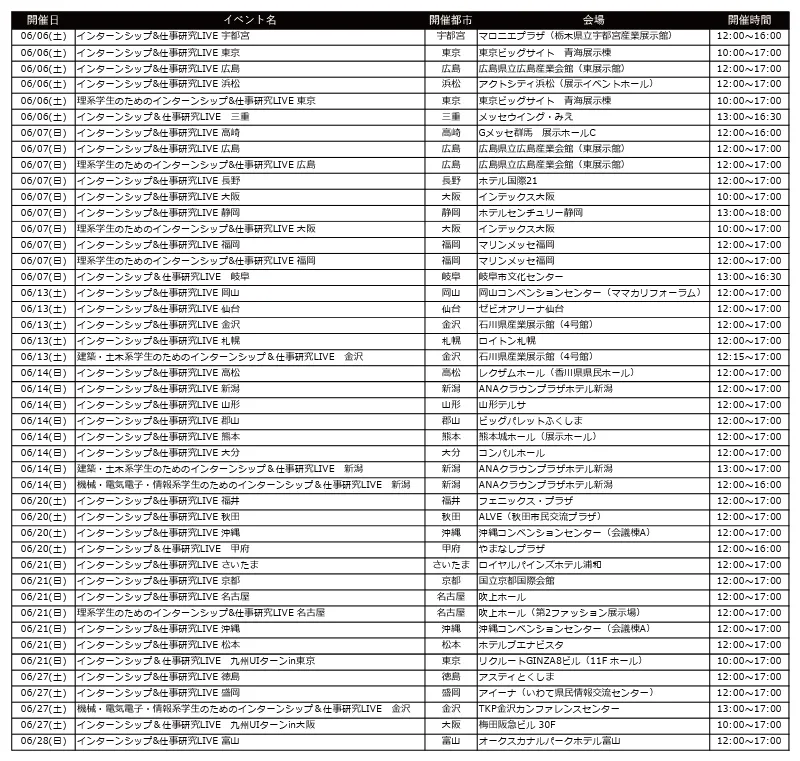 【6月1日(月)~6月30日(火)に中止する『リクナビ2021』合同企業説明会一覧】