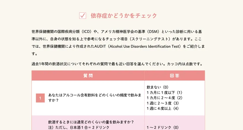 アルコール依存症かどうかのチェックシートはこちら