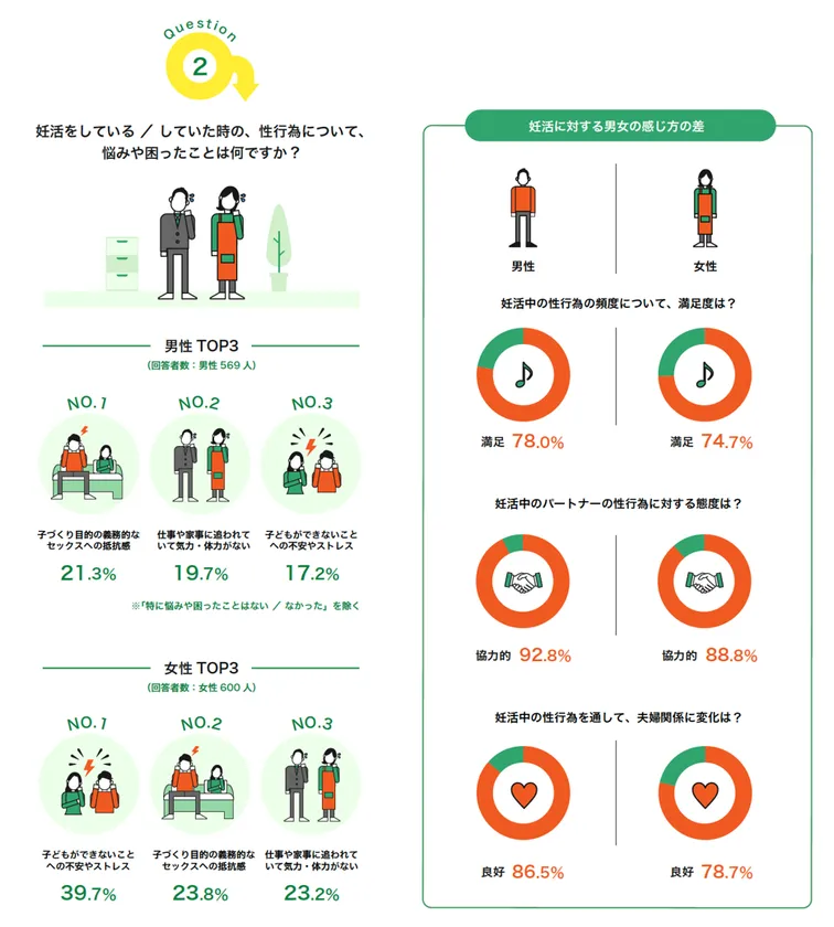 【「妊活中の性行為に対する悩みや困ったこと」TOP3!妊活中の夫婦はパートナーへの不満が少ない?】