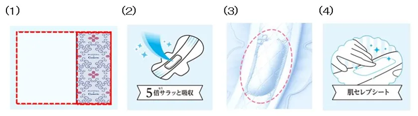 (4)「肌セレブシート」と「ふんわり立体ギャザー」