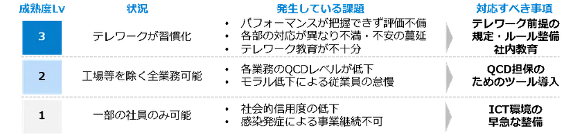 テレワーク成熟度レベルごとの課題と対応事項