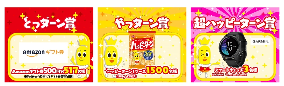 【やっターン賞】: 108gハッピーターン 1ケース(12袋入)1500名様
