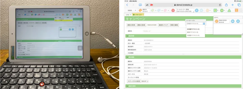 Brekeke CIMはウェブブラウザを使ってCTI操作を行うため、タブレット環境でも操作性は変わりません。タブレットをキーボードとマウスもしくはトラックパッドと連携させればデスクトップPCと同様の操作も可能となります。