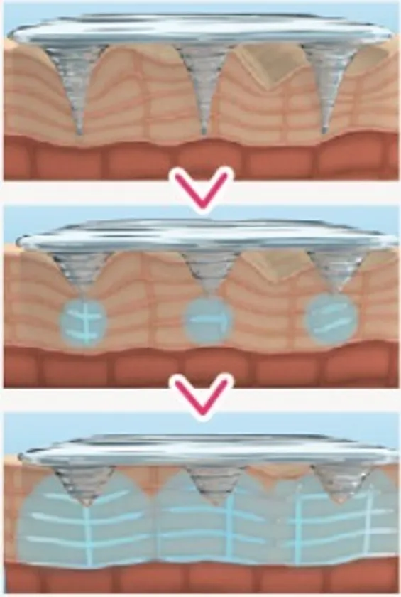目に見えないほど微細な針はすべてヒアルロン酸Naで作られているため、お肌への浸透率が高くなっています。