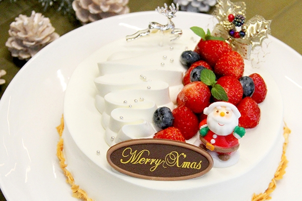 旬の苺とフレッシュクリームをふんだんに使用し、クリスマスらしいモダンなデコレーションを施した、オリジナルケーキをご用意いたしました。