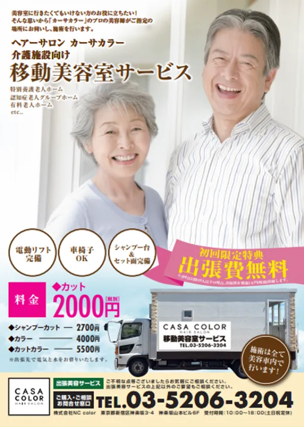 特別養護老人ホーム、有料老人ホーム等に美と笑顔を届けたい 新サービス「CASA COLOR 移動美容室サービス」を開始!
