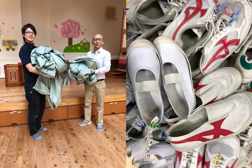 休校中18校のカーテンと児童の上履きを無料クリーニング