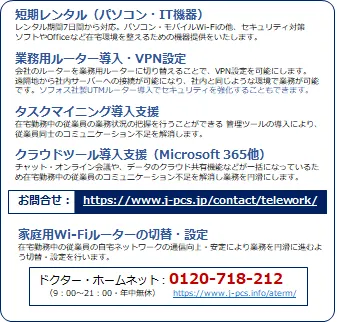 お問合せ:https://www.j-pcs.jp/contact/telework/