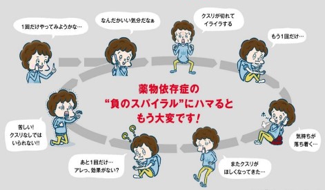 薬物の乱用を続けていると、やめようと思ってもやめられない「依存」状態となります。