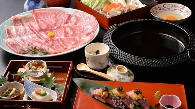 幻の和牛と言われる宮崎県産黒毛和牛 尾崎牛 を使ったすき焼きを提供しております。また、日本三大和牛に数えられる近江牛との食べ比べなどもお楽しみいただけます。