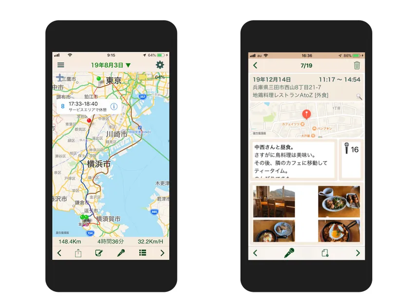 誰と会ったかは、写真や音声、メモで、位置情報と一緒に簡単に記録できます。