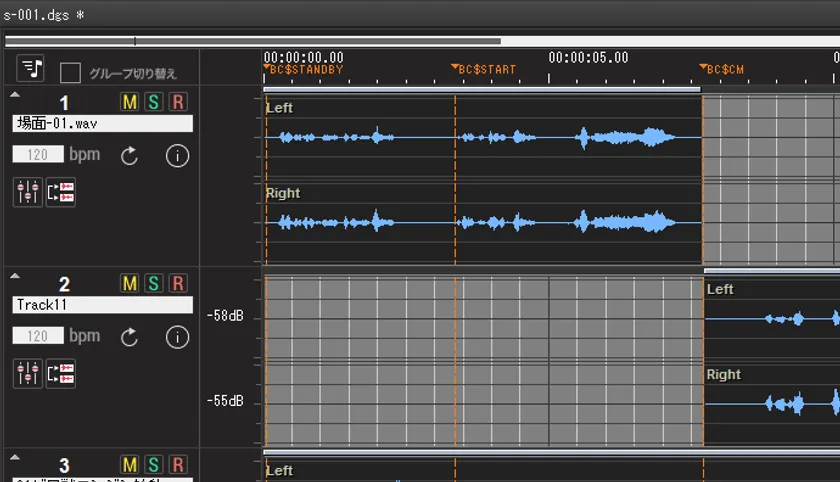 5.1ch波形編集ウィンドウ