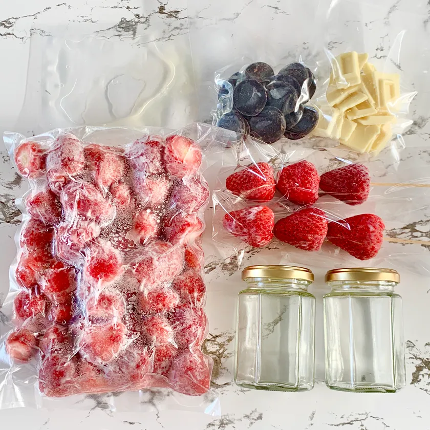 今回は、いちご農家が教える「オンラインいちごジャム作り教室」ということで、ジャムづくりに必要なセットを全ておうちへお届けいたします!ご準備いただくものは、砂糖と鍋と混ぜるへらのみ、簡単にジャム作りを体験いただくことができます。事前に美作農園の公式オンラインショップよりジャム作りセットをご購入いただき、届いたセットを準備して当日はご参加いただくのみでOKです。また、いちごジャム以外にも火元が危ないお子様にも楽しんでいただけるように、凍ったいちごアイスを自由にトッピングできる楽しい特典付き!当日は、Instagramライブを活用し、ジャム作り教室&農園見学を実施いたします。