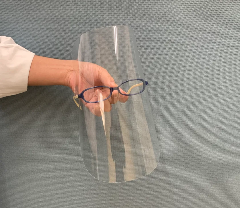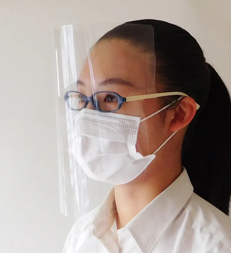 新型コロナウイルスが世界中で猛威を振るい感染者が急増する中、世界の医師や看護師、病院関係者の方々は感染リスクを負いながら最前線で戦っていただいております。そのような現場での医療物資の不足を少しでも解消できるよう、モノづくり企業として身近にあるものを流用しつつ、製造工程をできるだけ減らして、最短でお送りできるシンプルな作りにしております。メガネに装着してご使用いただくフェイスシールドとなりますので、メガネまたはメガネフレームをご準備ください。