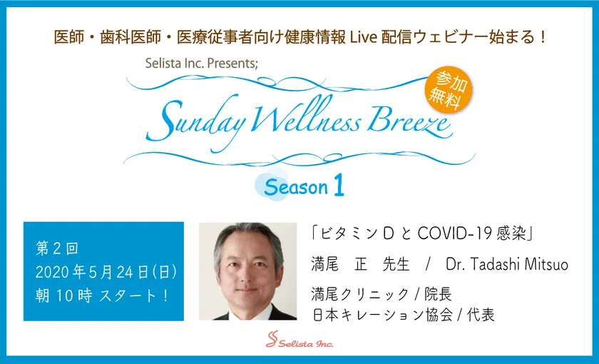 2020年5月17日から始まった医師・歯科医師・医療従事者向け 健康情報Live配信ウェビナー(ウェブセミナー) 「Selista Inc. Presents; ~Sunday Wellness Breeze~」