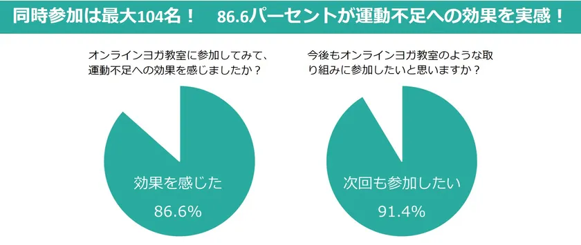 眼精疲労や心の緊張をほぐす顔のマッサージ。デスクワークで酷使する手や腕の疲れを癒す動き。腰の疲れや脚のむくみをほどくポーズなど、ゆっくりと穏やかに、佑佳子先生のヨガレッスンが続きます。業務が終わったメンバーが続々とアクセスし、スタートから15分をすぎたころには100名を突破、4社あわせて104名がオンラインヨガ教室に参加、およそ1時間のヨガ教室は終了しました。