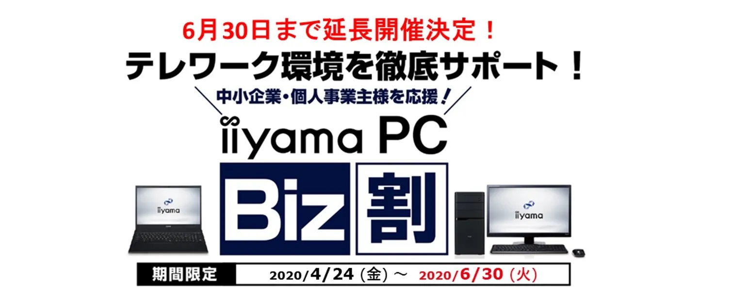 6月30日まで延長開催を決定 iiyama PCがテレワーク/在宅勤務を徹底サポート 中小企業・個人事業主様の支援キャンペーン「iiyama PC Biz割」