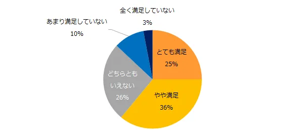 「テレワークの制度を使って働いたことがある」と回答した方に、テレワークの満足度を伺ったところ、6割が「満足」(とても満足:25%、やや満足:36%)と回答しました。