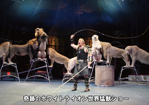 世界でも珍しい奇跡のホワイトライオンが人気の猛獣ショーをはじめ、ゆかいで楽しいアメリカンピエロ、可愛い象さんのショー、シマウマの曲芸、空中ブランコ、オートバイショーなどを楽しむことができます。