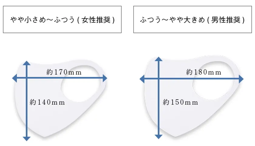 マスクのサイズ:「小さめ~やや小さめ」「ふつう~やや大きめ」の2サイズ展開