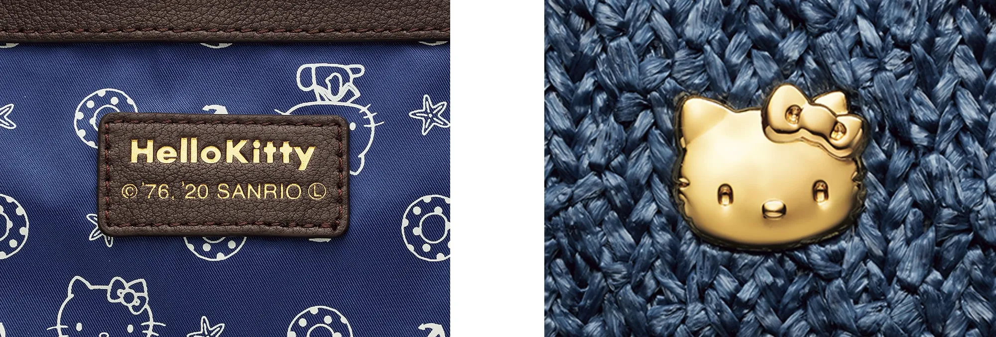 ■ハンドルやショルダーストラップには上質な牛革を使用。リュックの内側に広がるのはキュートなマリンテイストのプリント。今回のために特別にデザインされたオリジナル柄で、浮き輪やいかり、ヒトデといった夏モチーフと「セーラーカラー」のハローキティに心がときめきます。