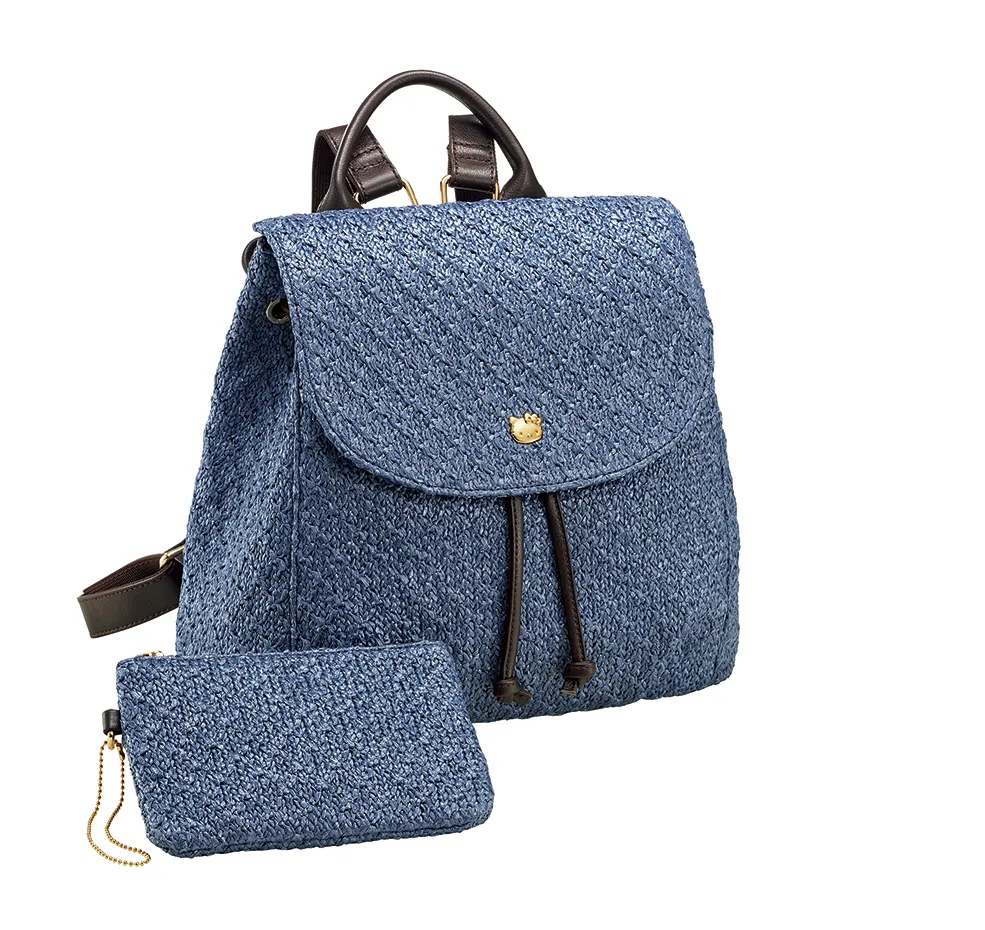 ハローキティの涼やか素材のタウンリュックは、これからのシーズンにピッタリな、さらりとした肌触りや理想のサイズ感のリュックです。シルキーな光沢のあるインディゴブルーのサマーヤーンを編み上げて、軽やかに仕立てたもので、べたつかず、さらりとした風合いは光まばゆい季節に最適です。
