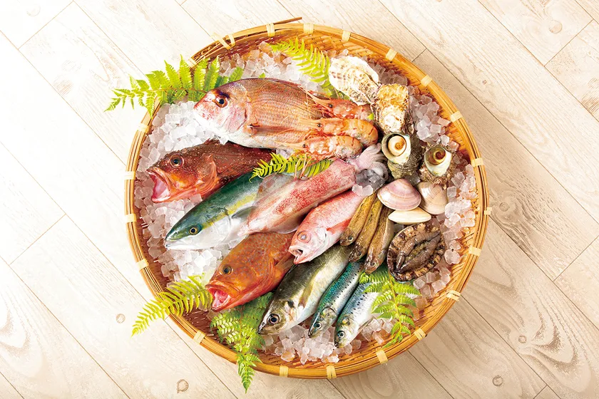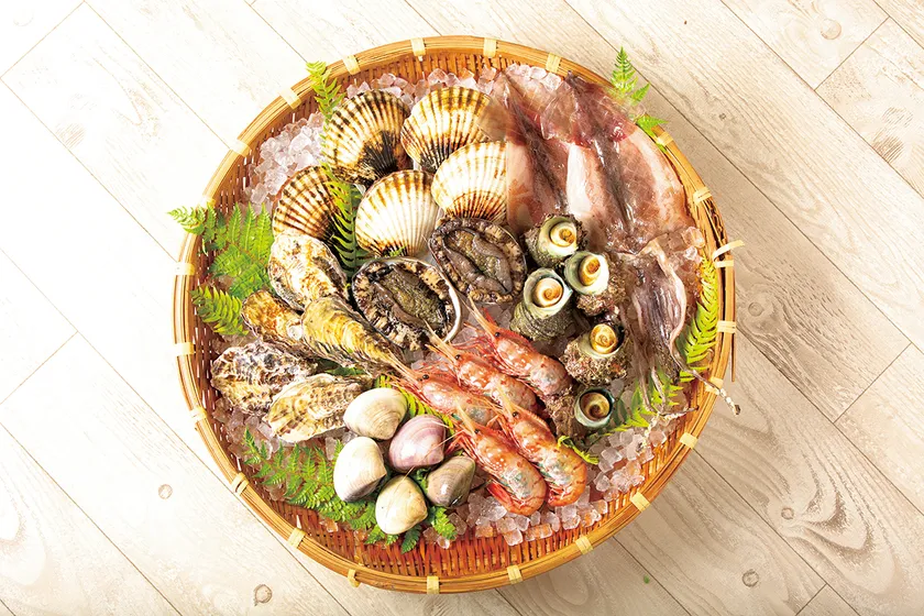 煮つけ用、塩焼き用、お刺身用の鮮魚やえび類、貝類など、旬の魚介を様々な食べ方で召し上がりいただけるようにセレクトした海の幸セット。
