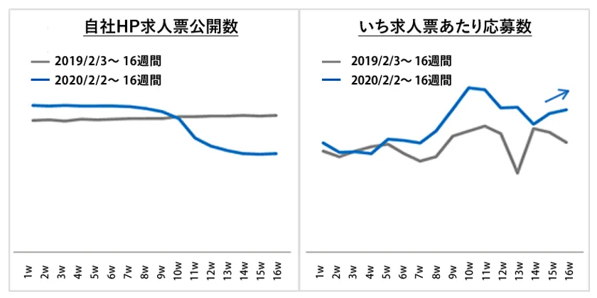 アルバイト総応募数は、集計期間の第10週~16週で「前年比221%」の伸長でした。