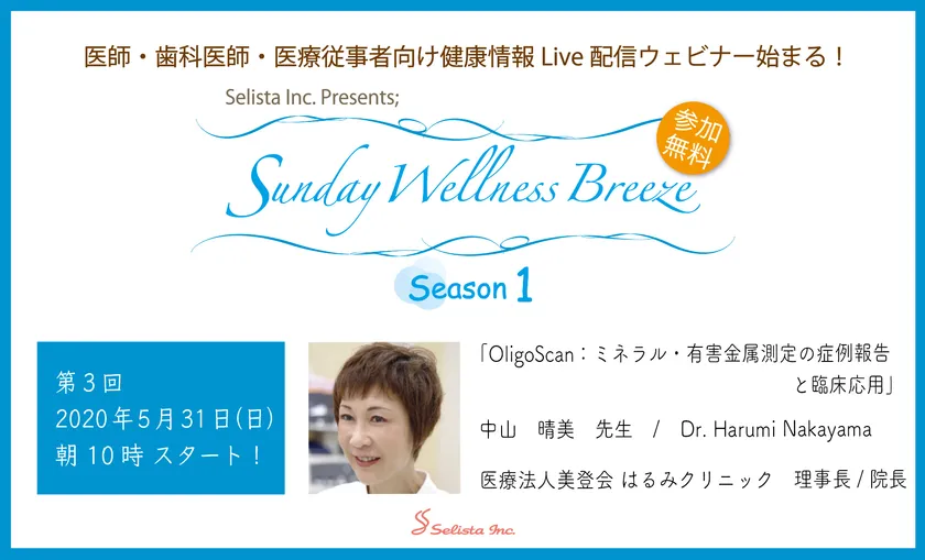 医師・歯科医師・医療従事者向け健康情報Live配信ウェビナー(ウェブセミナー) 「Selista Inc. Presents; ~Sunday Wellness Breeze~」