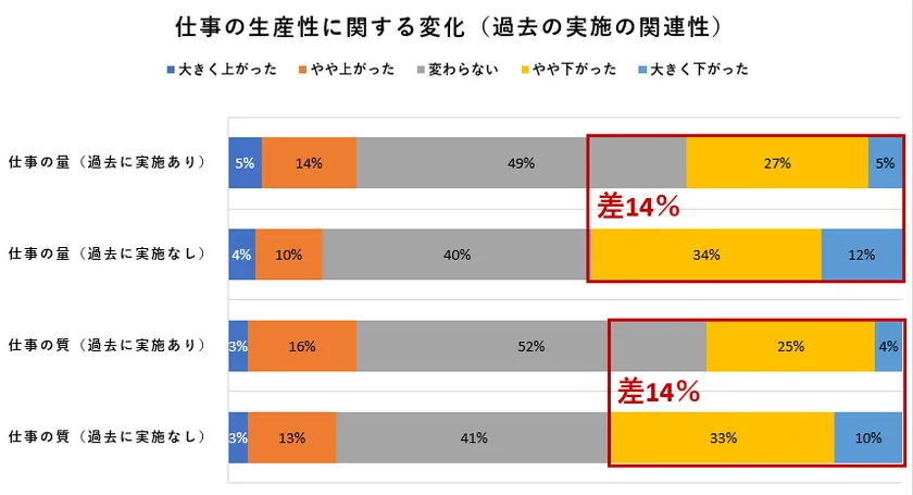 仕事の生産性に関する変化(過去の実施の関連性)