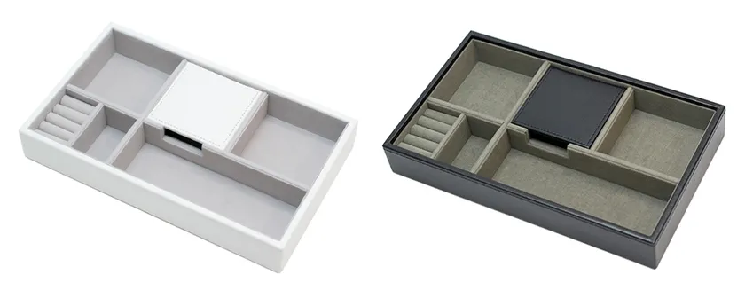 それぞれのスペースにどんなアイテムを収納するかは使用する方次第です。カラーは白・黒の2色展開。お部屋の雰囲気に合わせてお選びください。