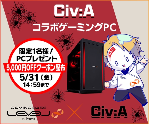 ゲーミングPC LEVEL∞、「Civ:A」との スポンサー契約締結を記念して、購入特典やWEBクーポン配布 さらに、サイン入りコラボPCが当たるキャンペーン実施