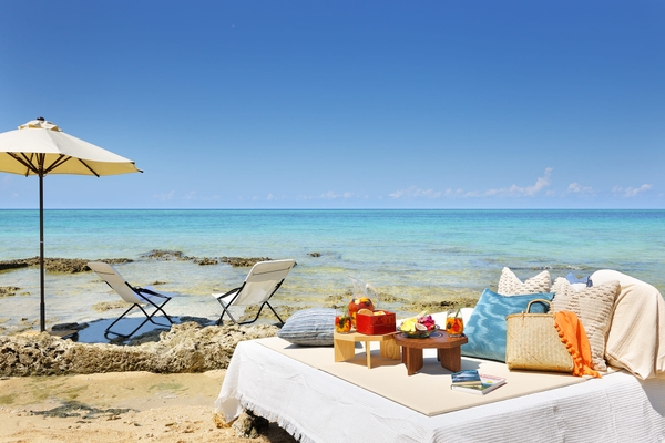各施設が独創的なテーマで、圧倒的非日常を提供する「星のや」。沖縄県・読谷村にある滞在型リゾート「星のや沖縄」では、2022年3月1日〜5月31日の間、絶景に身をゆだねて心と身体をリフレッシュする「はまうりアフタヌーンティー」を提供します。星のや沖縄の前に広がる自然海岸に、爽やかな潮風を感じられる3つの特別席を設えます。沖縄らしさを感じるオリジナルスイーツや伝統ハーブとフルーツが爽やかに香るフルーツブレンドティーを特別席で楽しめる、1日1組限定の贅沢なアフタヌーンティーです。