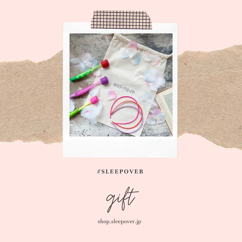 お泊り会に出かける際の下着や小物などが入れられる便利でおしゃれな巾着と、お花を模ったカバー付き歯ブラシといった、あるだけでお泊り会がもっと楽しくなるスペシャルグッズをプレゼントさせていただきます。