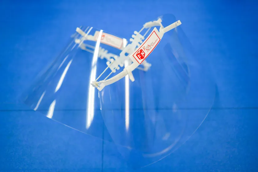 寄贈したフェイスシールドは、当社R&D事業部のエンジニアが設計・開発をし、フレーム部とアジャスターを自社の3Dプリンターを使い製作。製作にあたっては緊急災害医療資機材等の販売を手がける3DS株式会社(本社:栃木県宇都宮市、代表取締役社長:林 洋克)より助言を受け、形状や耐久性などの改良を重ねながら開発・製作をしております。